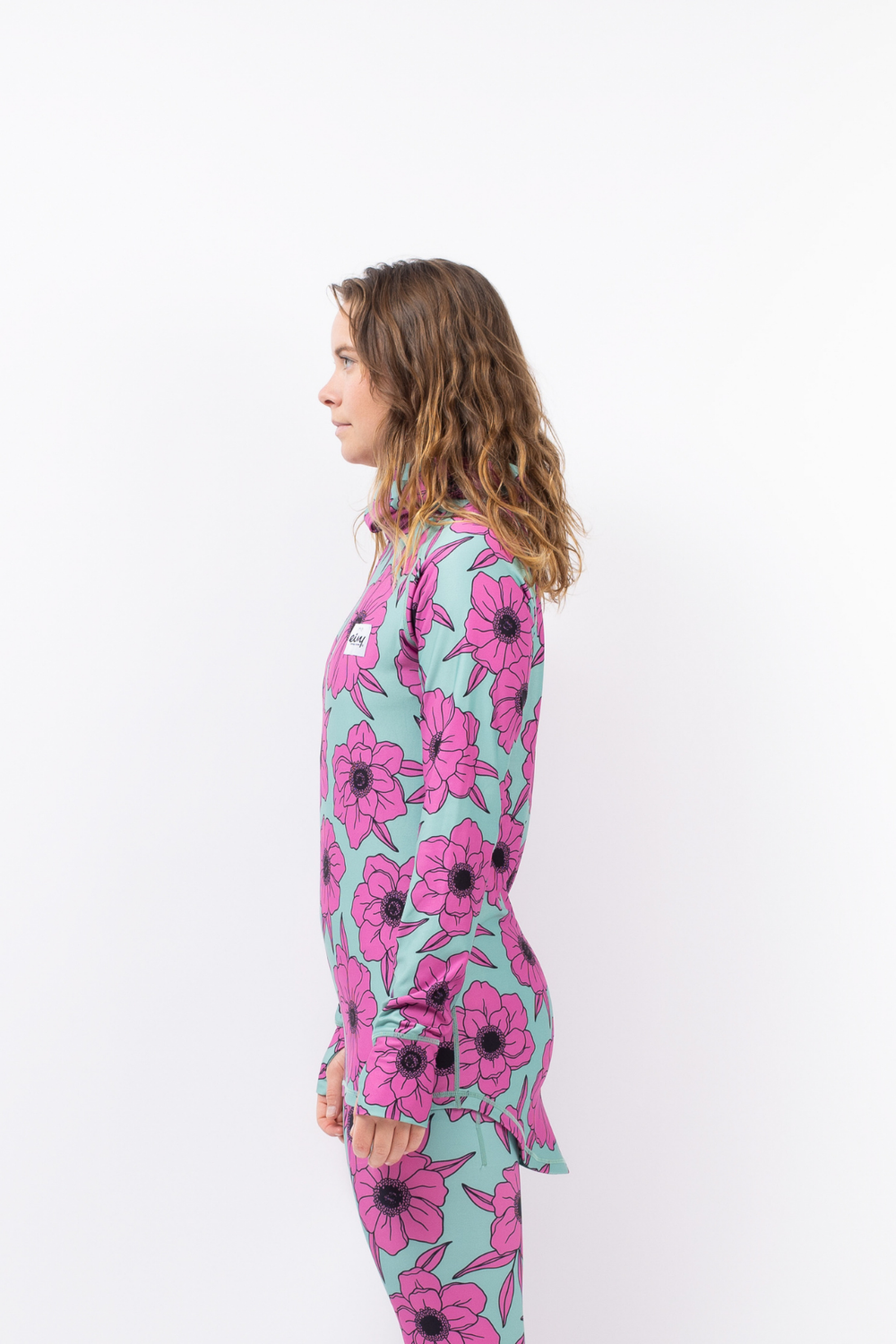 Be extra toasty in our base layer that combines streetfashion and maxed out functionality, with a printed snow leopard pattern. The extended back and the integrated gaiter neckwarmer that is higher in the back, making it easy to tuck it under the helmet or beanie for warmth, protects you on cold winter days. The flatlock seams prevent chafing and the integrated thumb loops helps the sleeves stay put through all your adventures.