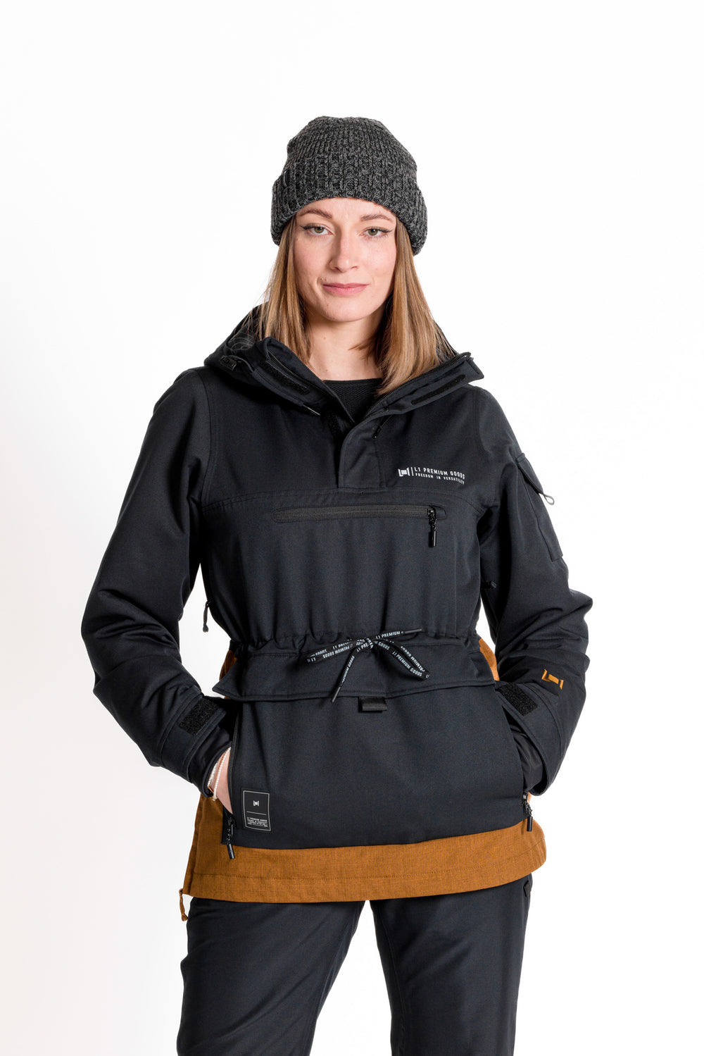 - Ajuste de capucha y dobladillo delantero con cordón elástico