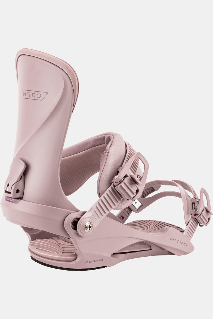 La fijación Cosmic es la opción perfecta para snowboarders de todos los niveles, desde principiantes hasta expertos. Su flexión media proporciona un equilibrio perfecto entre soporte y maniobrabilidad, permitiendo a los riders afrontar fácilmente cada descenso, sin importar su nivel. Esta fijación está equipada con las tecnologías de fácil uso de Nitro para un ajuste personalizable y una ergonomía inigualable. Construida con confianza para durar años.