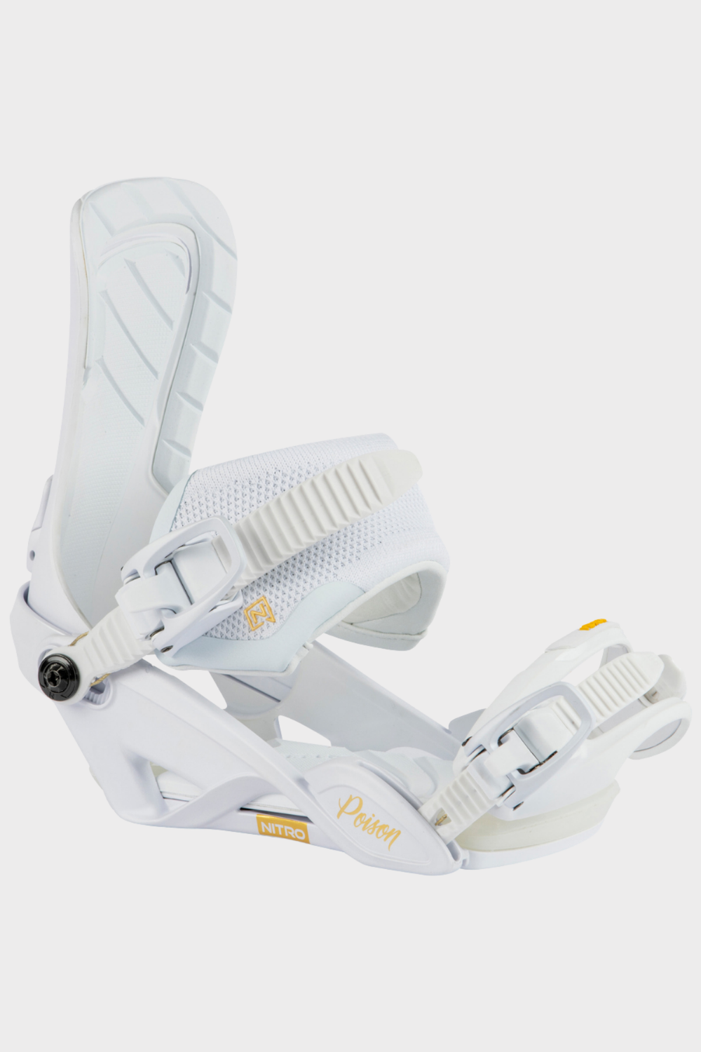 Designed for the experienced rider looking for the best in comfort, control, and durability at a minimum weight for all-mountain charging! The top-of-the-line women‘s binding offers precision, versatility, power, and durability for expert-level snowboarders to explore the entire mountain. The poison is the go-to binding for Nitro pro rider Miyabi Onitsuka on and off the contest course.